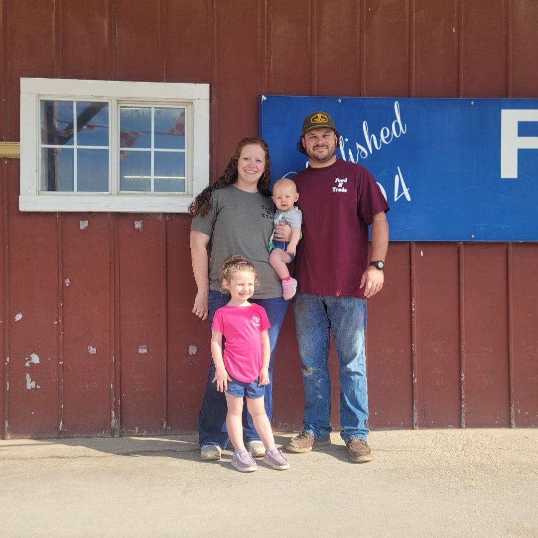 Adam owns and operates a custom hay business and a Lime Truck, while we raise beef and lamb and sell it directly to consumers in wholes and halves. Agriculture is our shared passion, and in 2022, we took a new step by purchasing the local feed store, Feed N Trade. Our daughters have also joined in, tending to their chicken and duck flock and selling fresh eggs at the store.